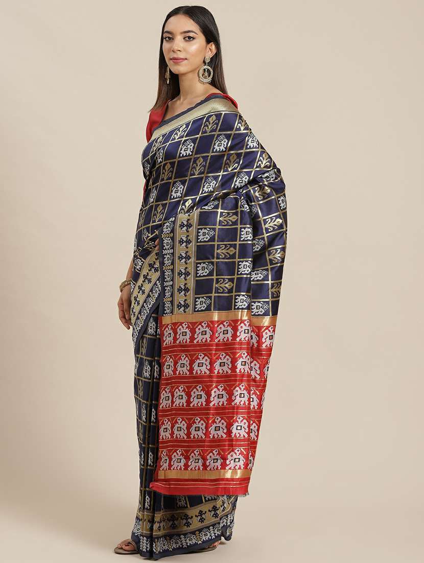 - » women's checks navy blue colored saree with blouse