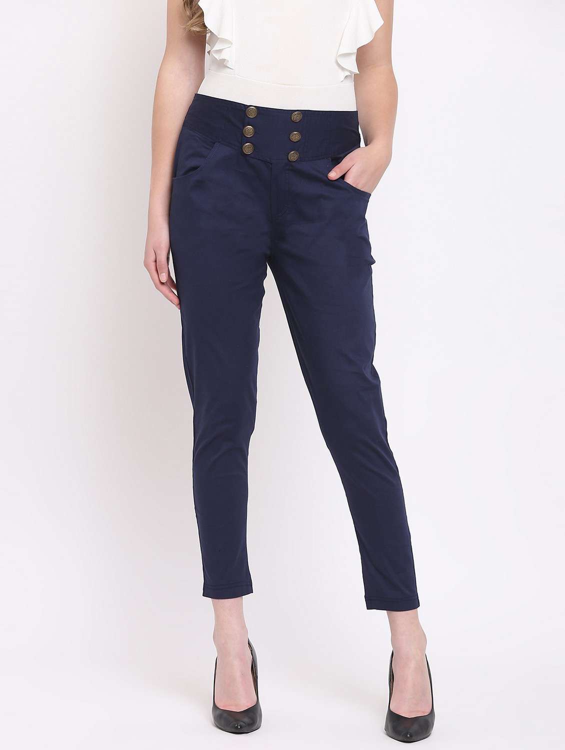 - » women solid flat front cigarette pants