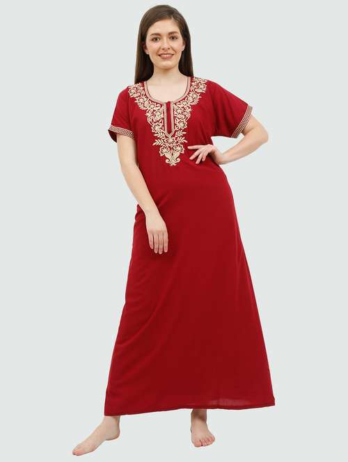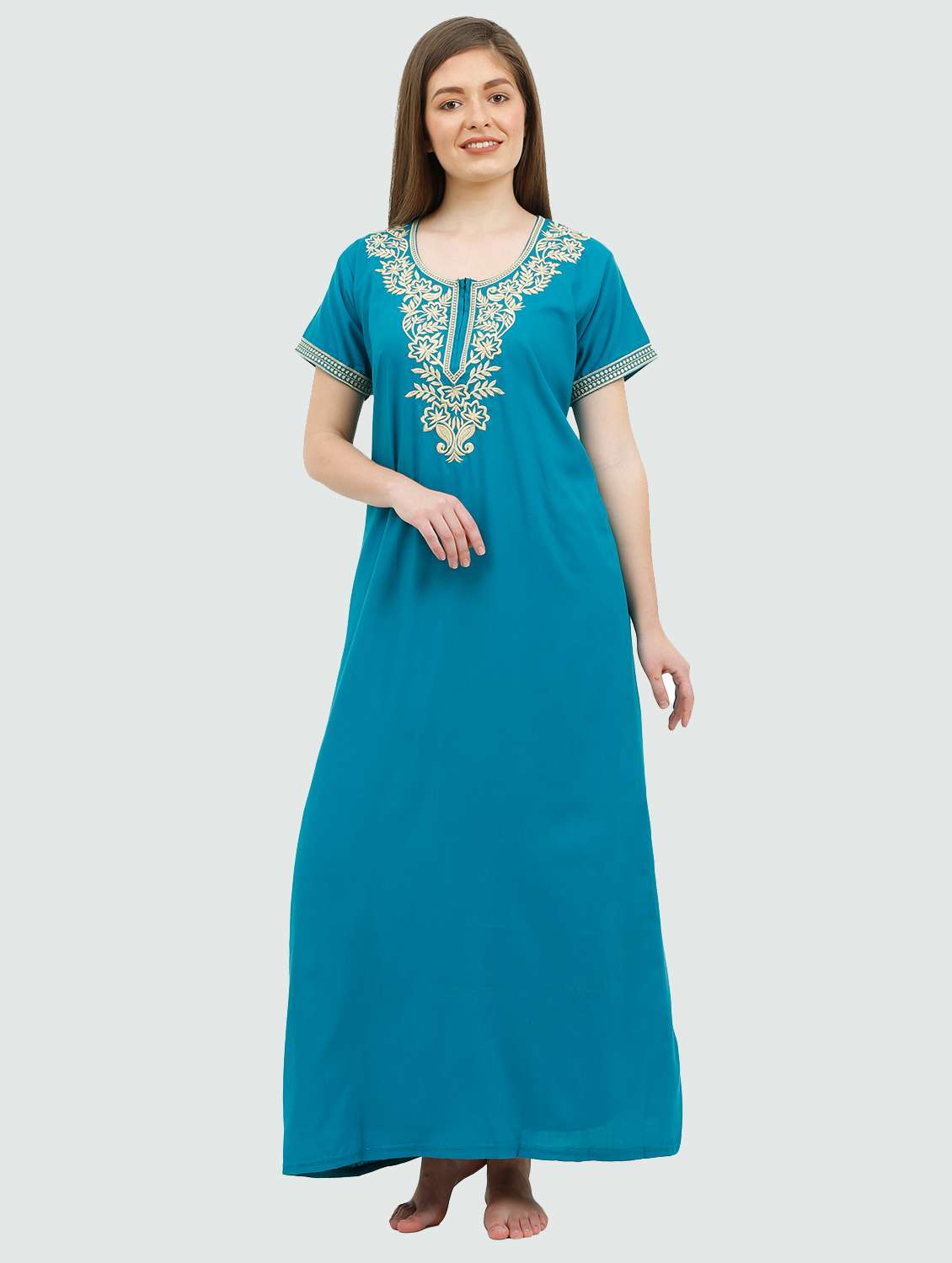 Sheer comfort is the desire for everyone. Brand RnP brings to you, your desire. A supremely comfortable full length nightgown made of best cotton. Lovely embroidery adding to its elegance and a pocket for your belongings.