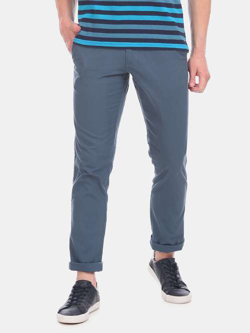 blue solid chinos