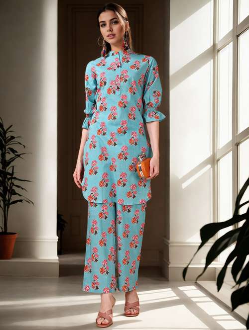 - » women floral print kurta and pant set