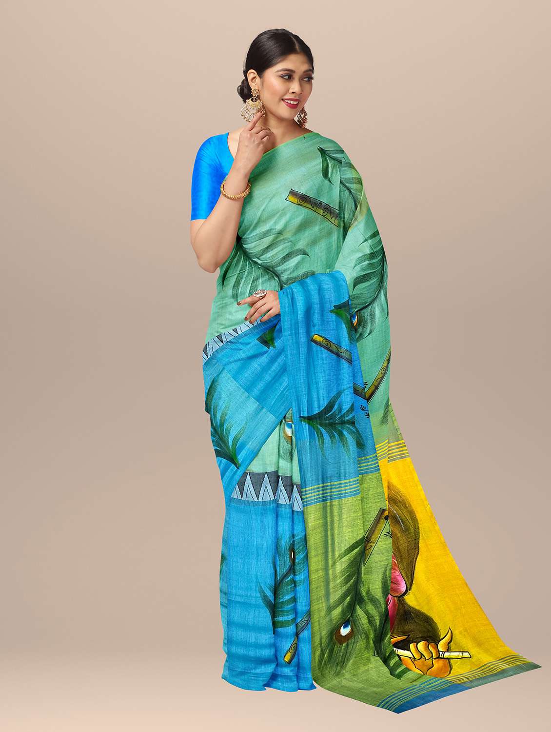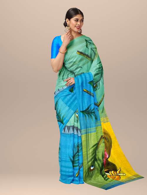 - » self design printed handloom saree with blouse