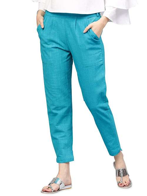 turquoise solid pleated trouser