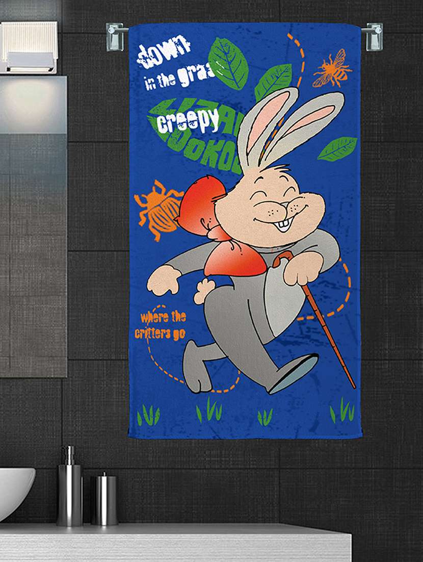 - » 100% cotton 300 gsm kids cartoon bath towel for bathroom set of 1pc, multicolor, 58 cm x 116 cm - color - blue rabbit