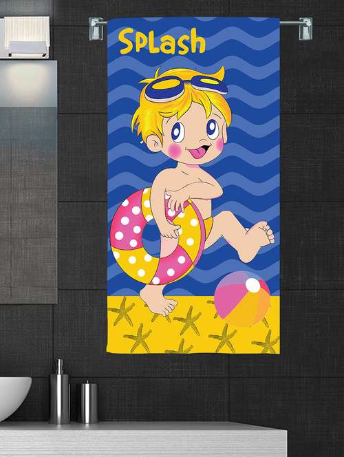 100% cotton 300 gsm kids cartoon printed hand towel for bathroom set of 2pc, multicolor, 38 cm x 58 cm - splash .