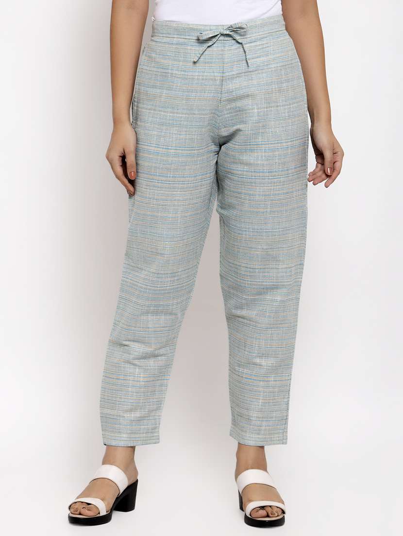 blue cotton straight tapered pant
