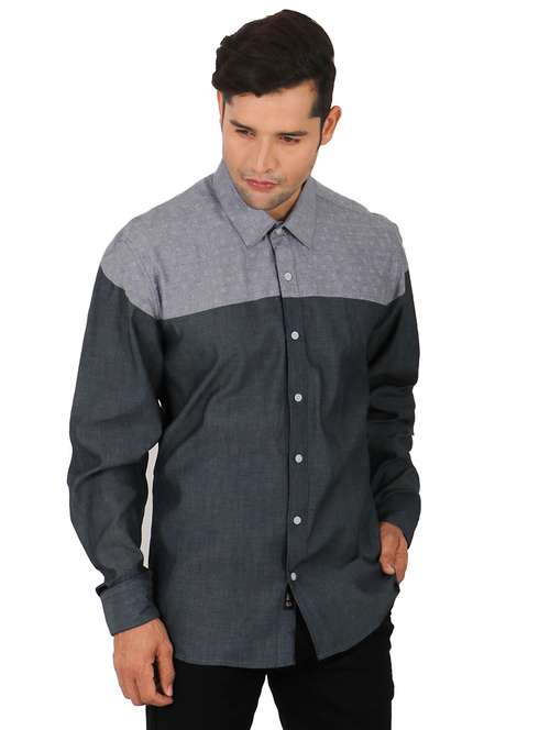 blue color block casual shirt