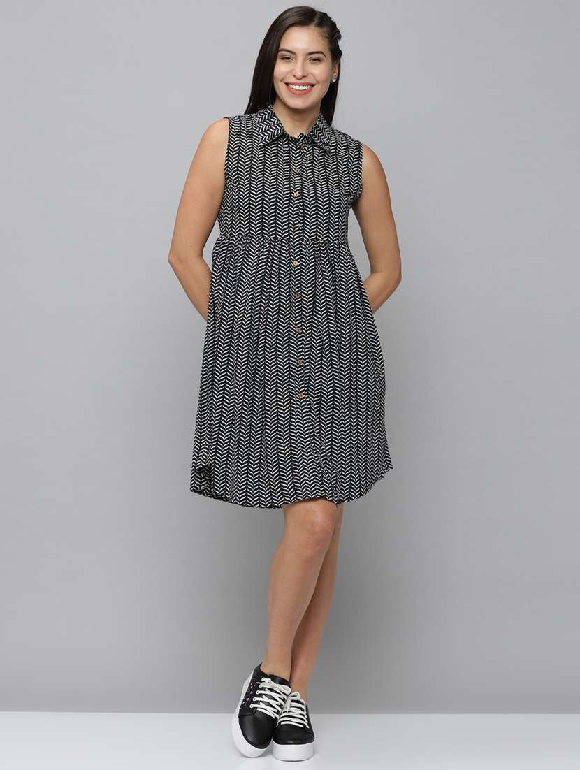 - Dress up in a soothing pattern and don this dress made of cotton material.