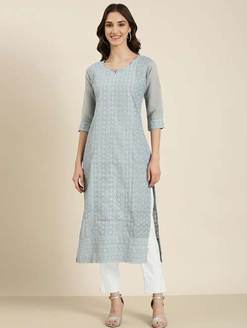 - Grab this beautiful kurta made up of cotton fabric featuring notch neck designs.