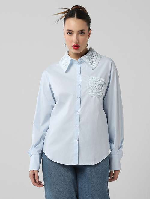 • Looking for some premium collection of shirts? Well, get ready to don attractive shirts from SHOWOFFFF and find them in light blue colours.