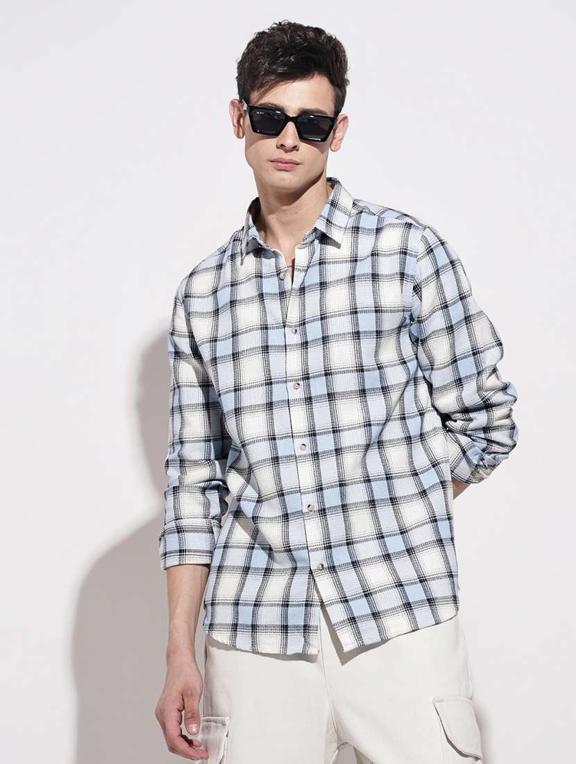 men checkered long sleeve regular fit casual shirt