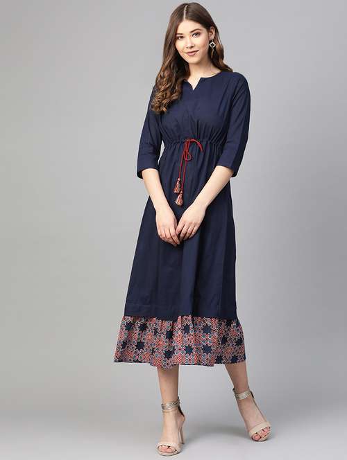 - » solid a-line ethnic dress