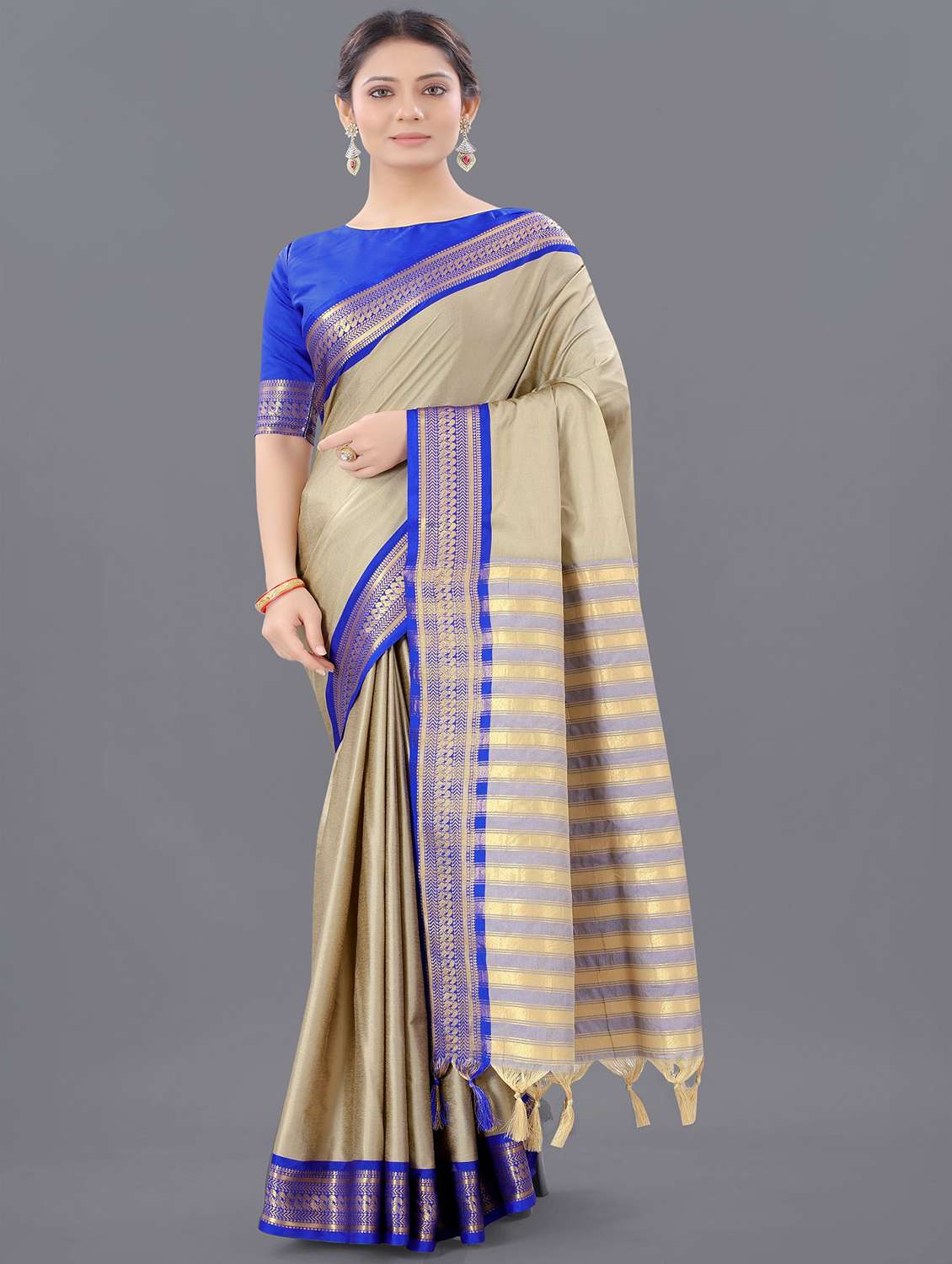 women's self design beige colored saree with blouse - 20473927 - Very Small Image - 1