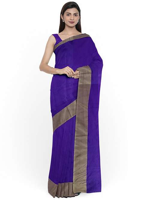 women's solid blue colored saree with blouse - 18482534 - Very Small Image - 1