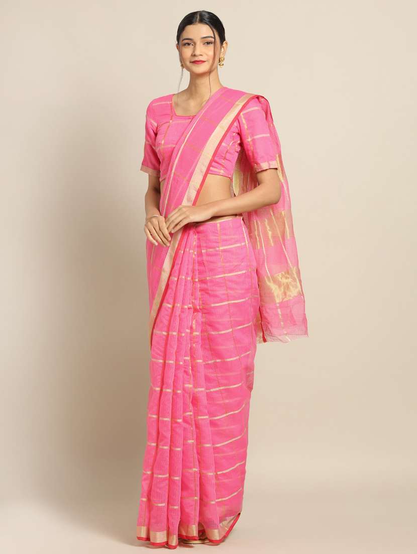- » women's checks pink colored saree with blouse