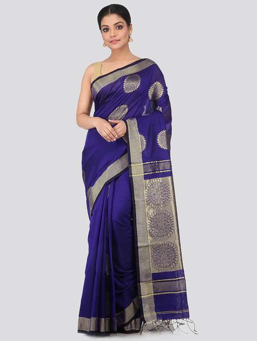 blue cotton silk handloom saree with blouse - 18384663 - Very Small Image - 1