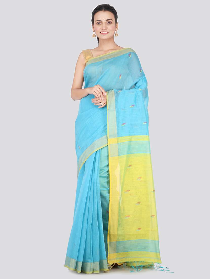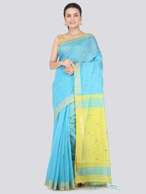 blue cotton silk handloom saree with blouse - 18384807 - Very Small Image - 1