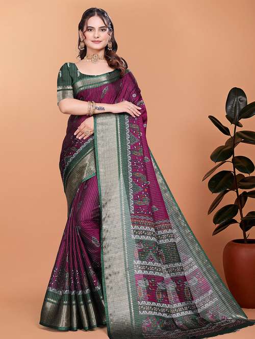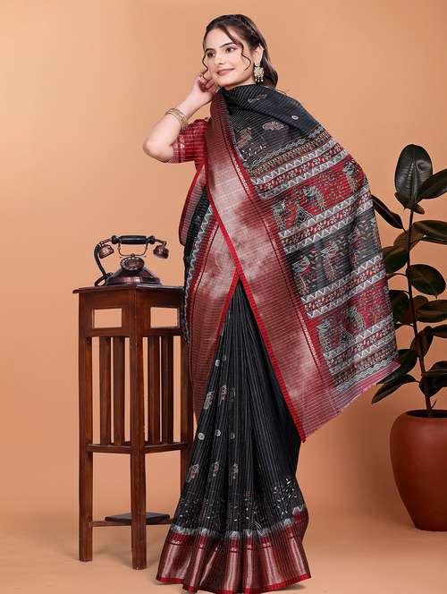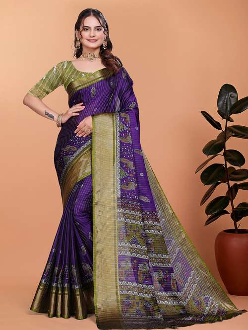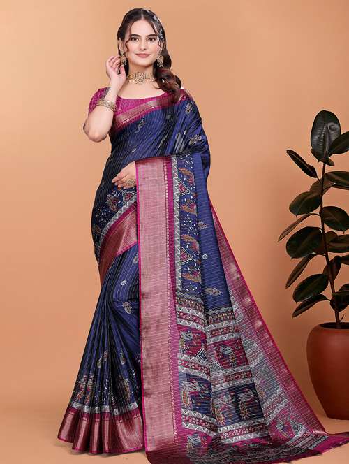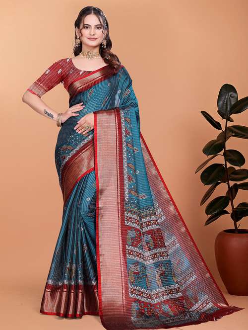 Blue Aura Cotton Designer Border And chitt pallu saree With Attach Blouse Pies