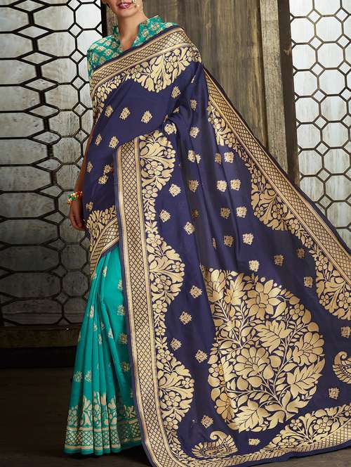 delicate golden zari half and half saree