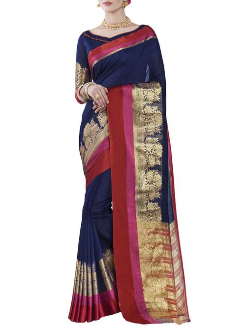 - » blue cotton silk saree with blouse