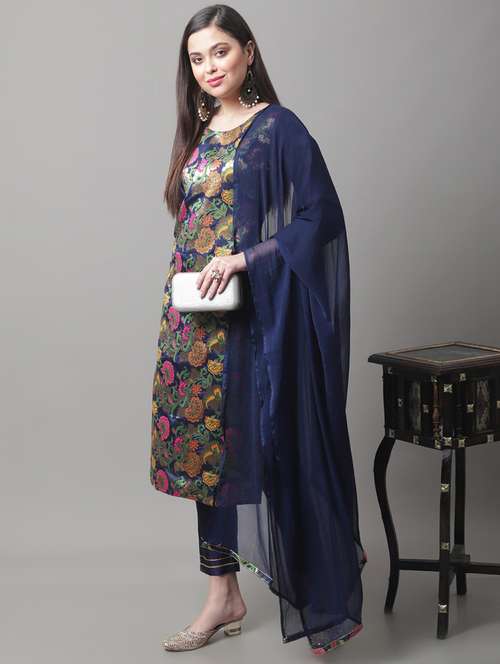- Find gorgeous sets of ethnic wears in trending designs in navy blue colors suitable for festive wear of occasions.