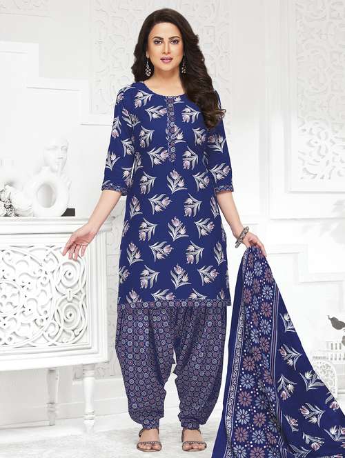 - Look ultra gorgeous in unstitched suits from SIMMU and grab these beautiful suits in blue colour.