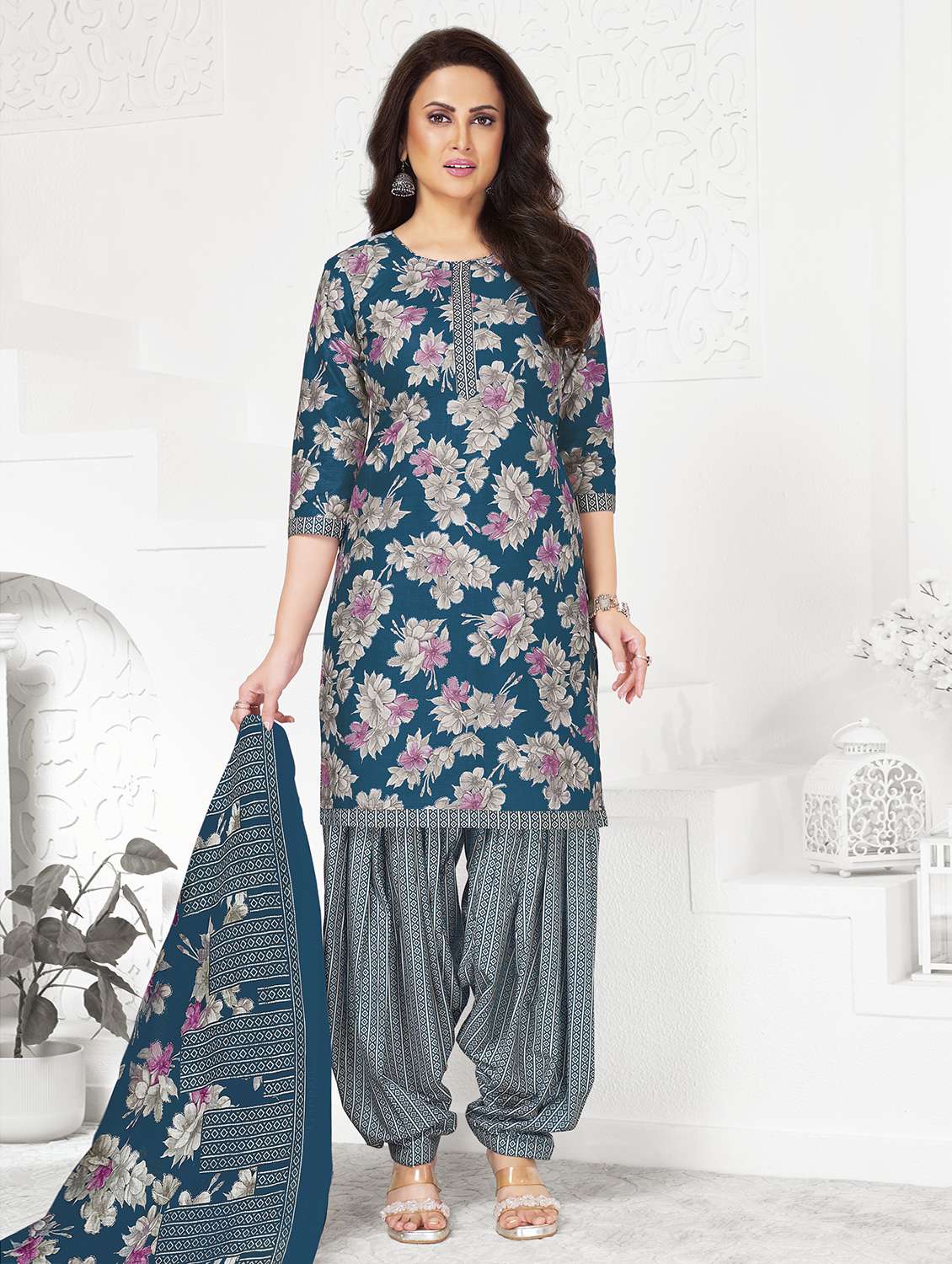 women floral printed unstitched salwar suit set