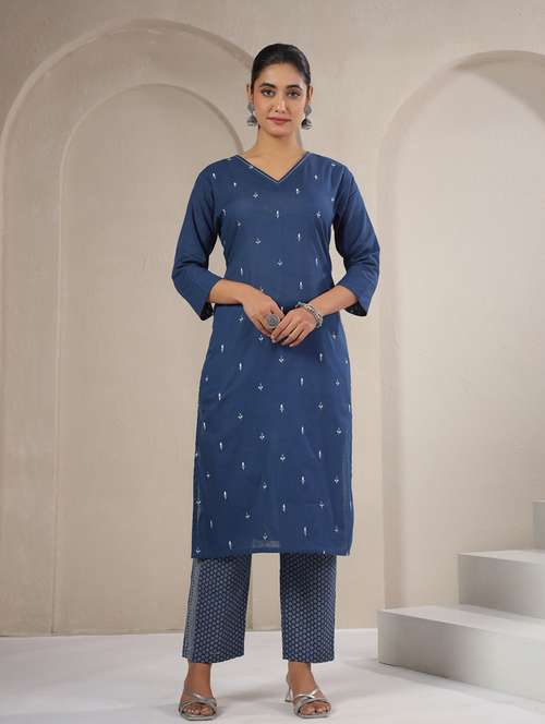 - Find gorgeous sets of ethnic wears in trending designs in blue colors suitable for casual wear of occasions.