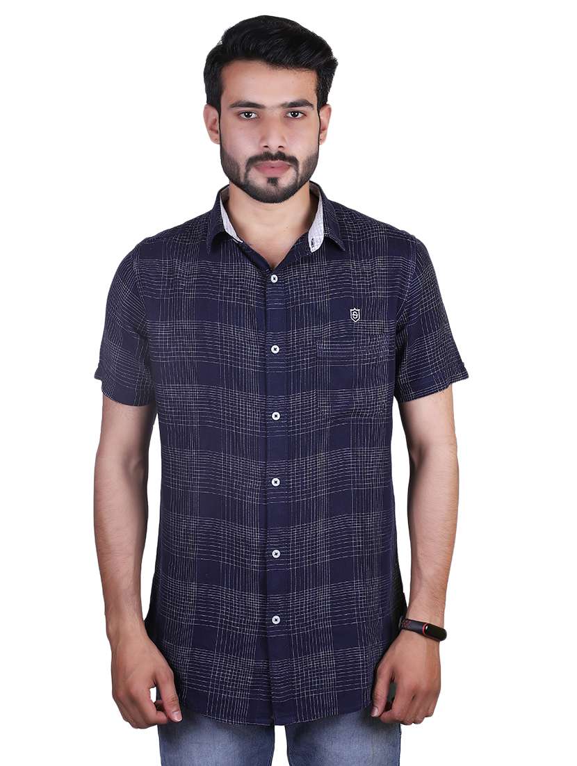 - » navy blue checkered casual shirt
