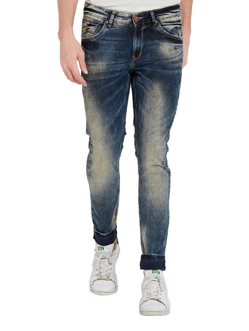 blue heavy washed denim jeans