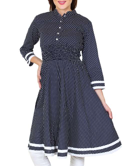 navy blue cotton polka dots printed anarkali