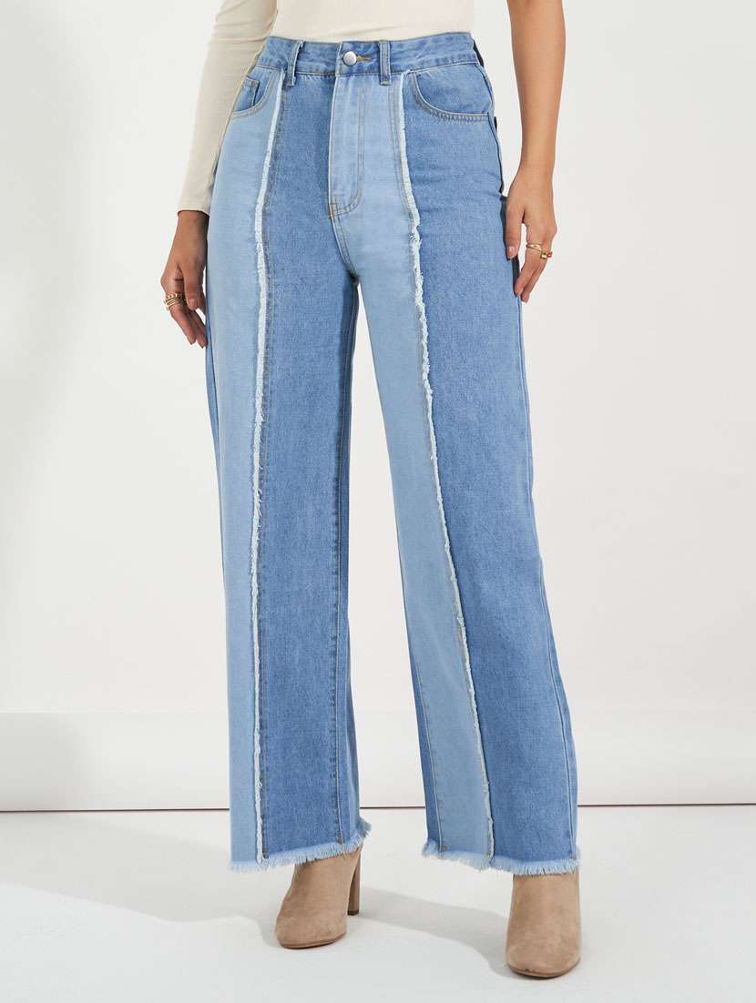 - Choose from the trendy assortment of wide leg jeans in a variety of light blue colors and timeless designs to complete your clothing essential list.
