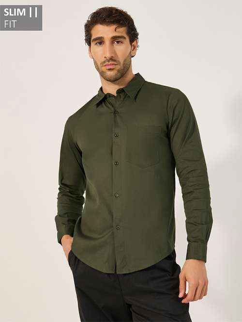 - » men solid long sleeve slim fit casual shirt