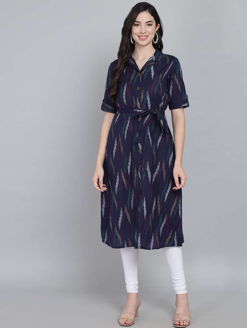 - Grab this beautiful kurta made up of cotton fabric featuring shirt collar neck designs.