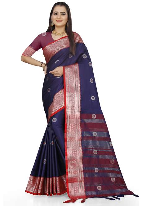 - » women's self design navy blue colored saree