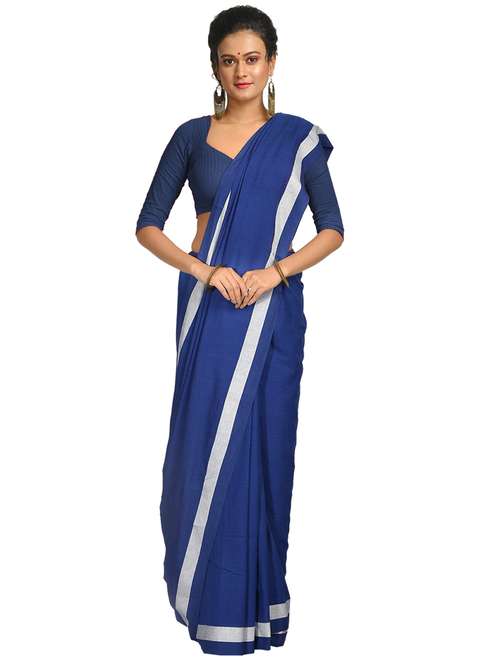 women's bordered navy blue colored saree with blouse - 17268413 - Very Small Image - 1