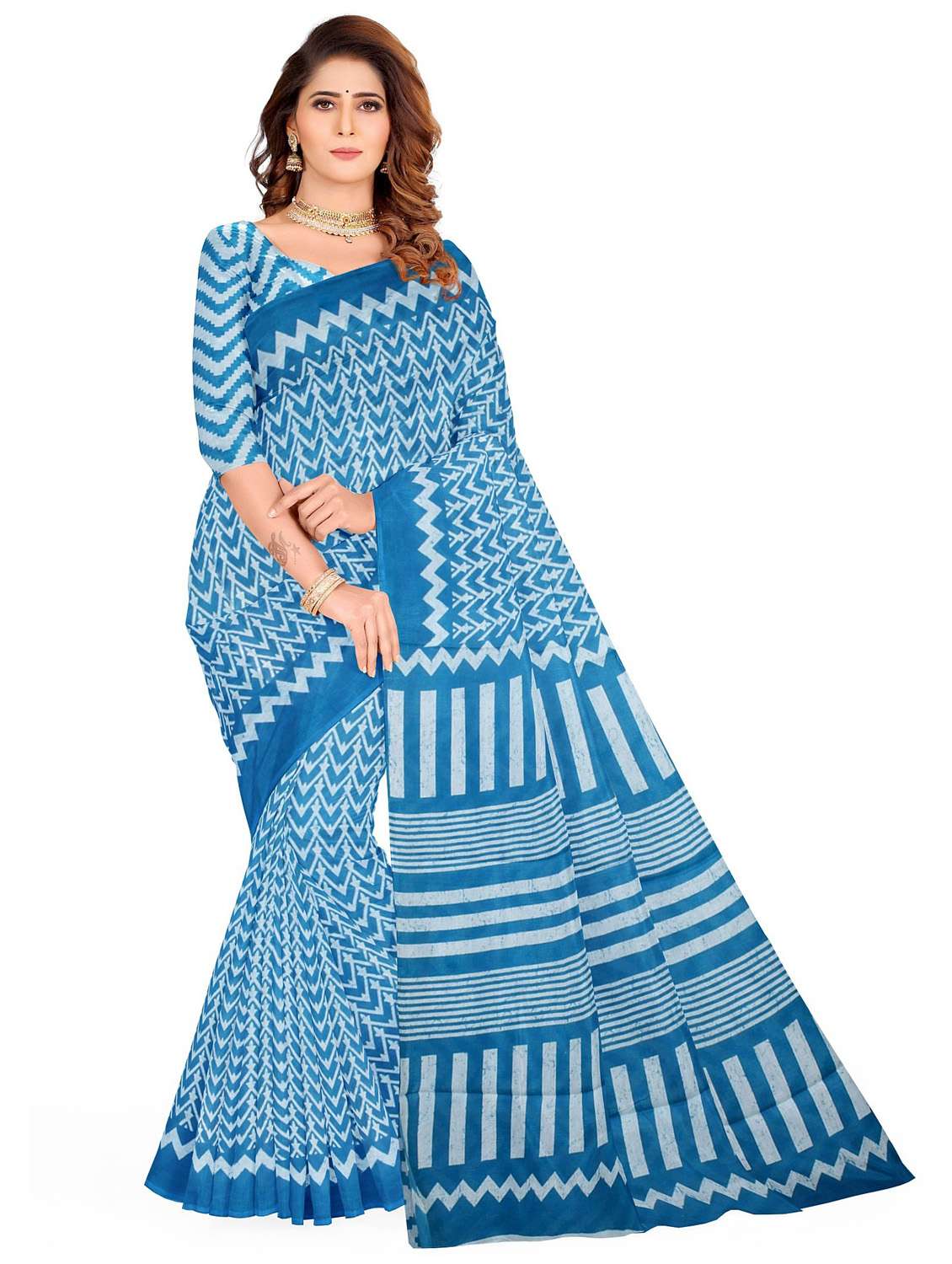 - » turquoise colored printed saree with blouse