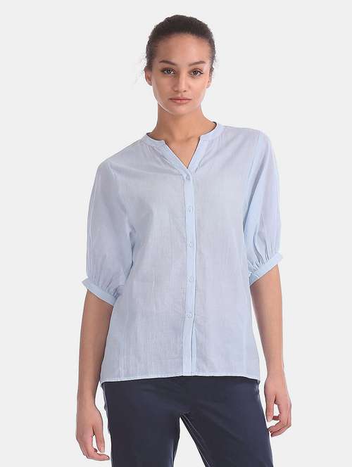 - » mandarin neck high-low top