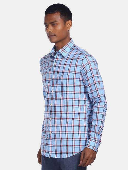 - » blue checkered casual shirt