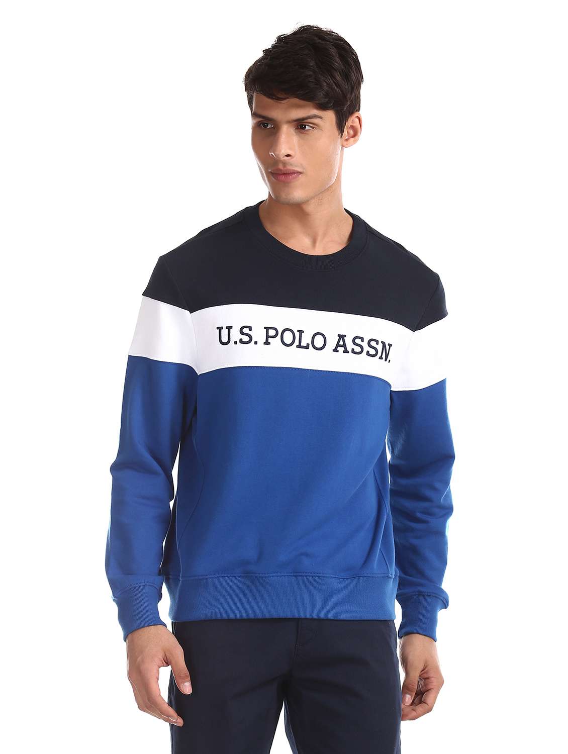 blue color block sweatshirt