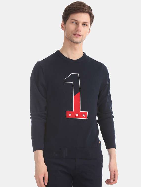 - » navy blue printed pullover