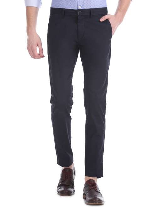 navy blue solid flat front casual trouser