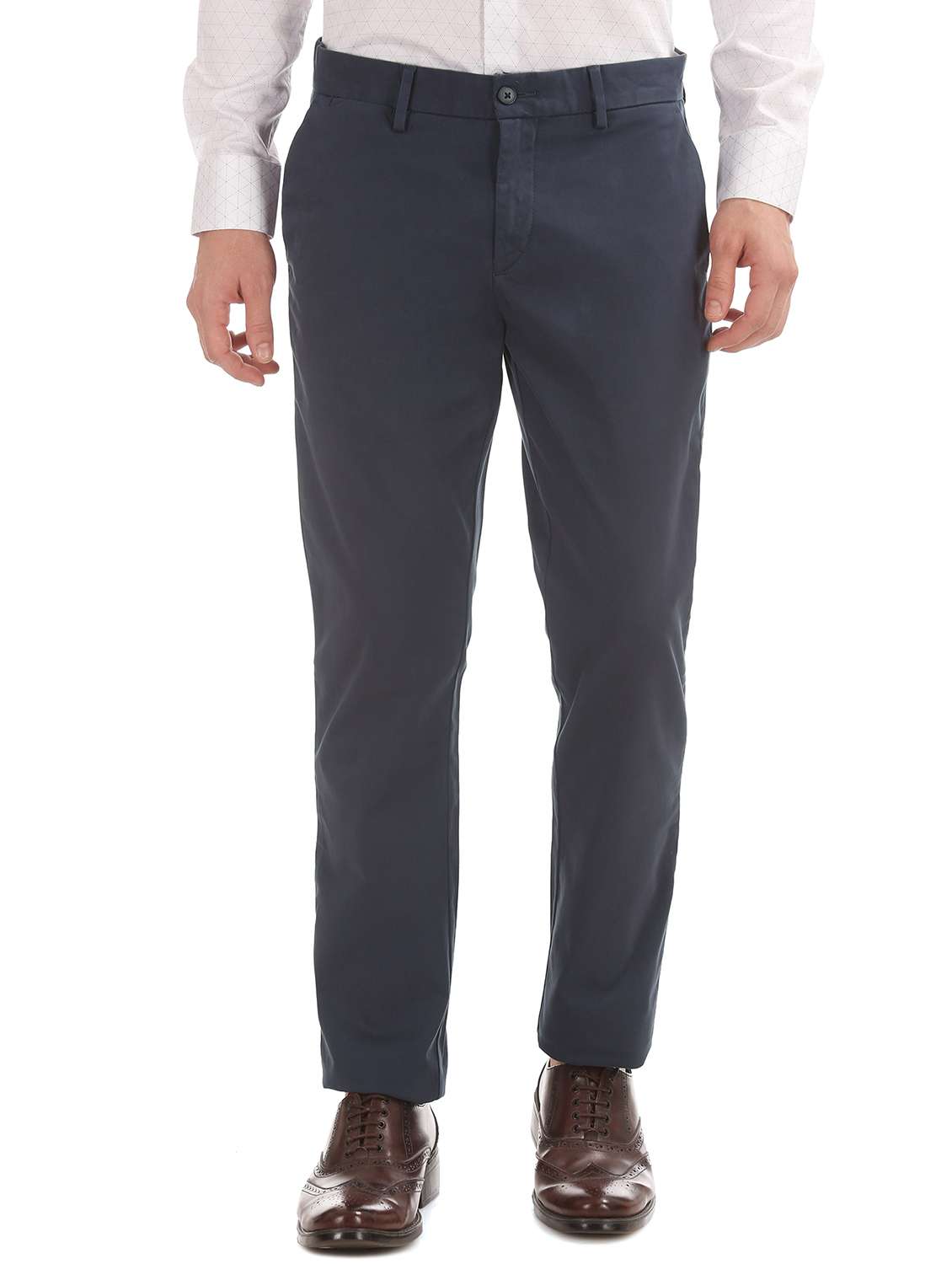- » navy blue solid flat front casual trouser