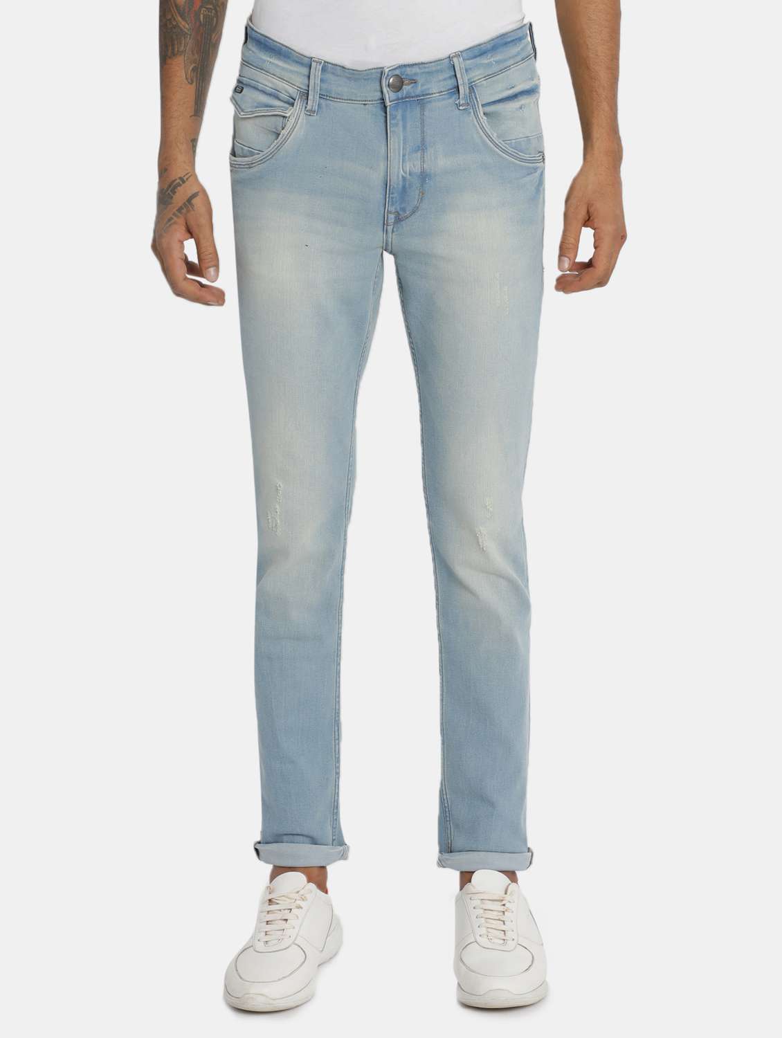 blue light washed ripped denim jeans