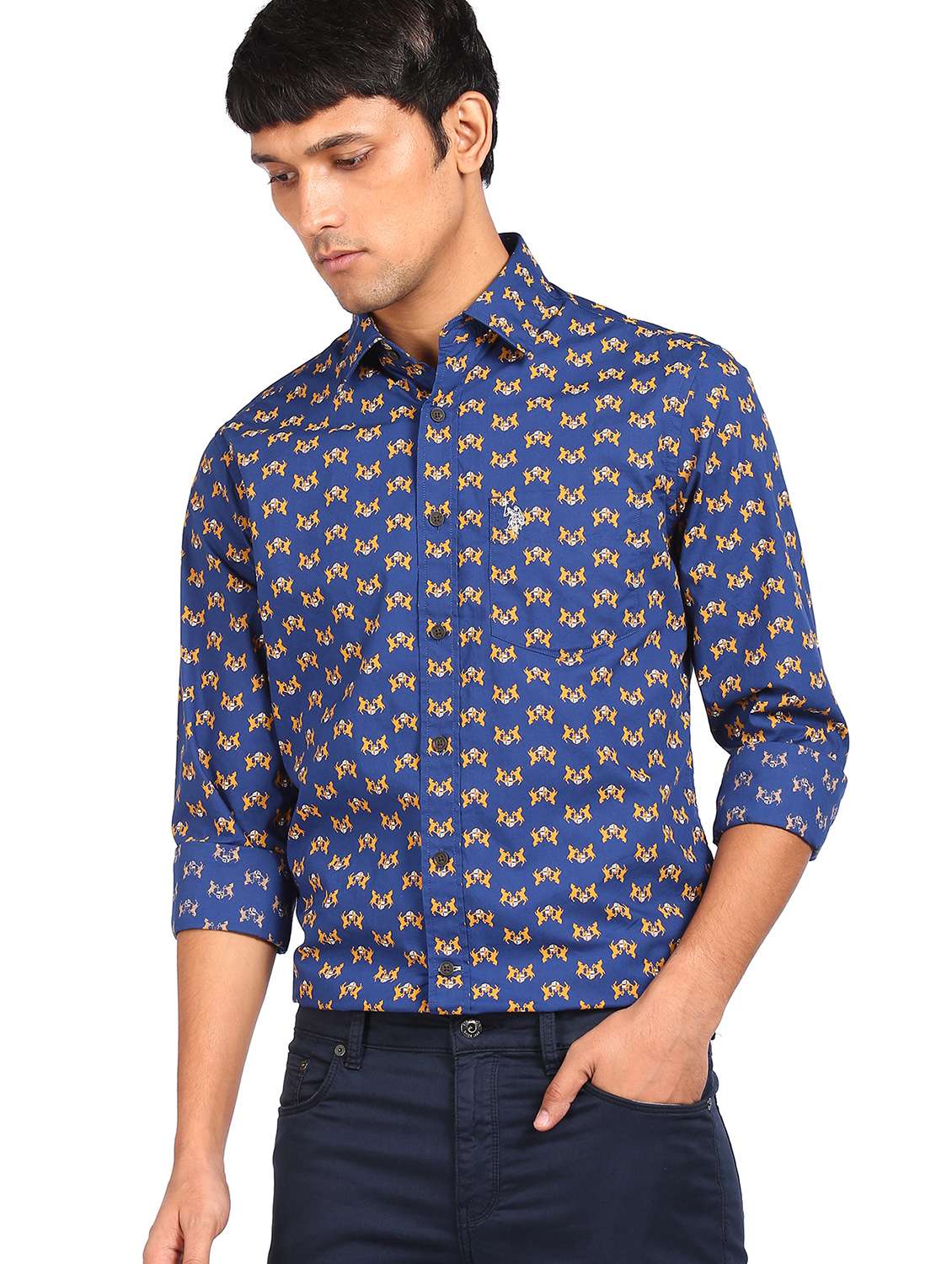 blue printed casual shirt