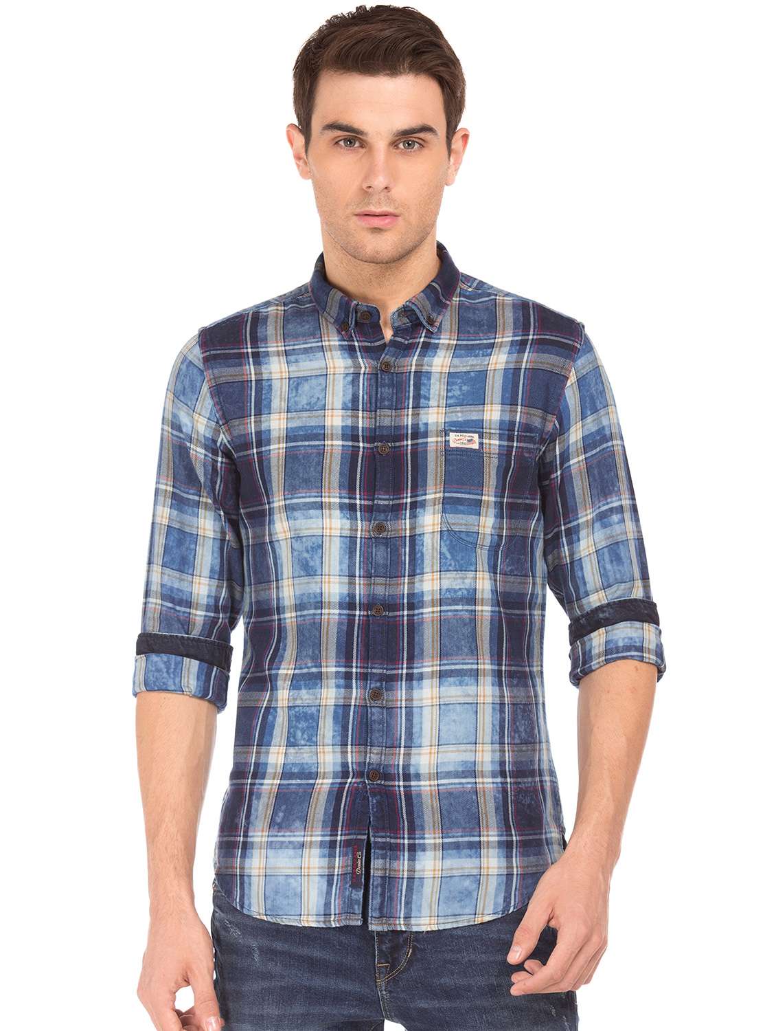 blue checkered casual shirt