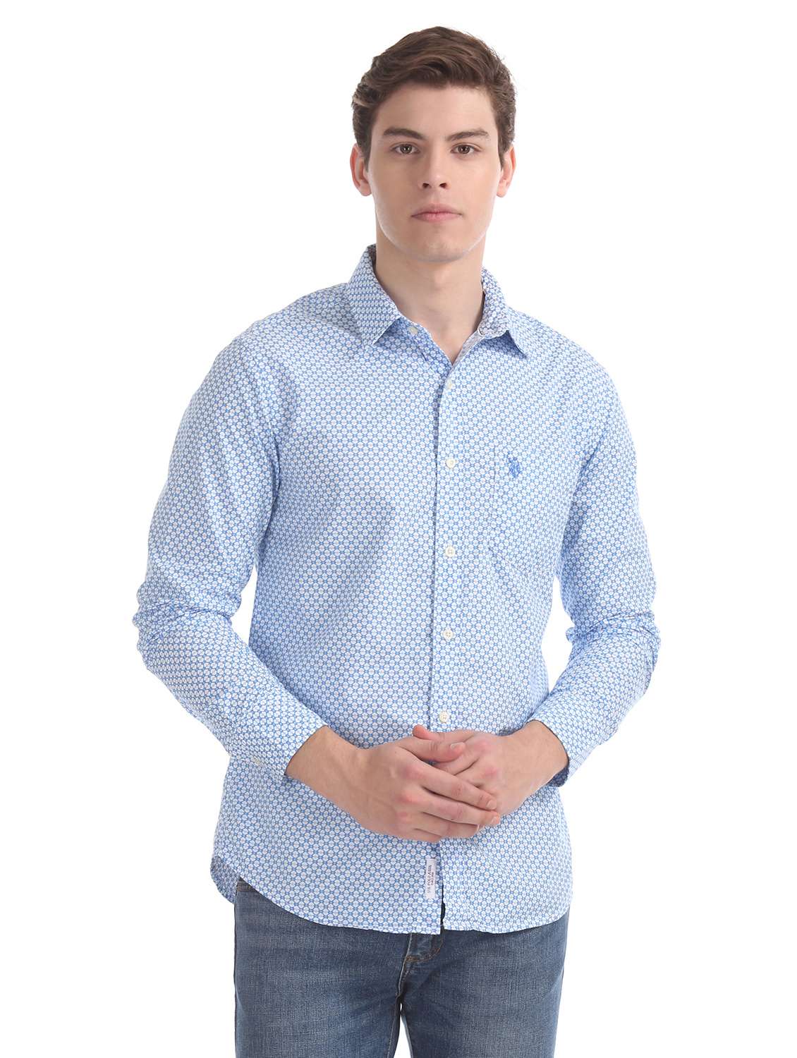 - » blue printed casual shirt