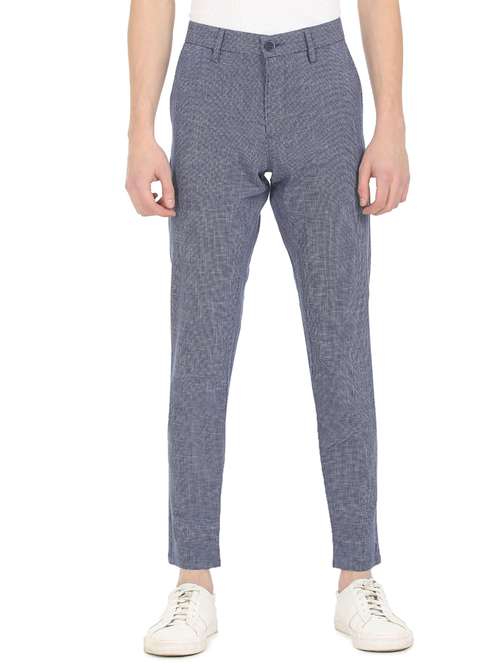 blue textured flat front trousers formal trouser