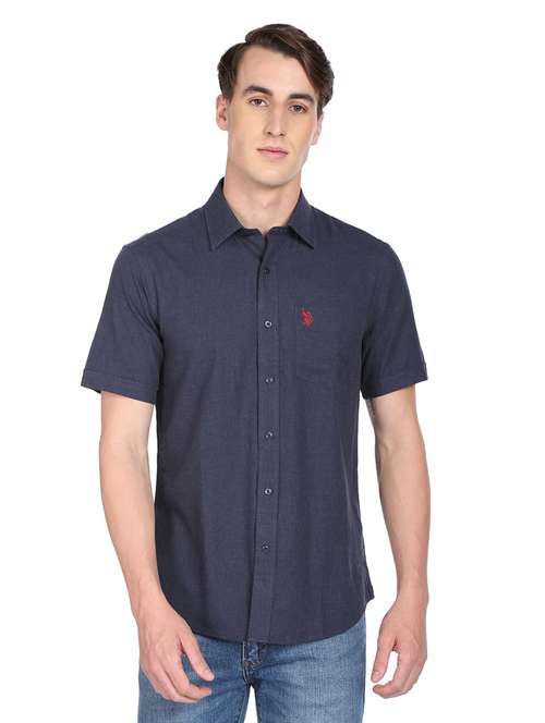 - » navy blue solid casual shirt