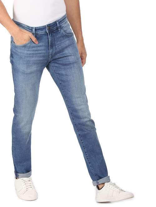 blue solid washed jean
